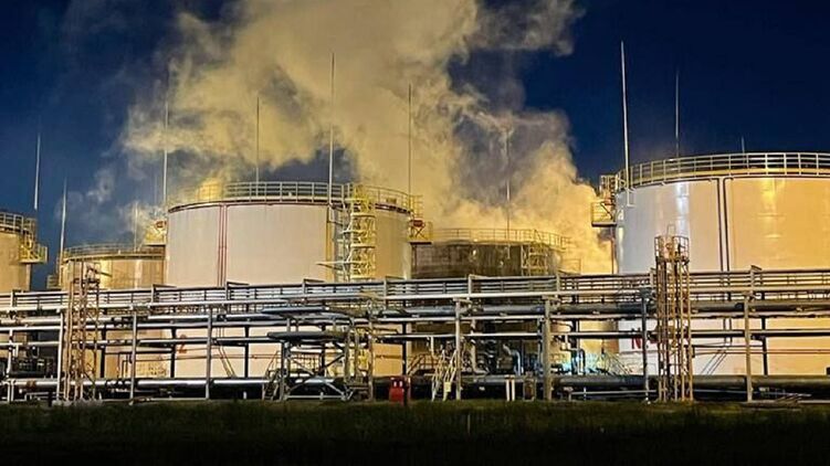 "РИА Новости" із посиланням на екстрені служби повідомляє, що причина пожежі - удар безпілотника. У цей момент у резервуарі було 4,5 тисячі кубометрів дизельного палива.