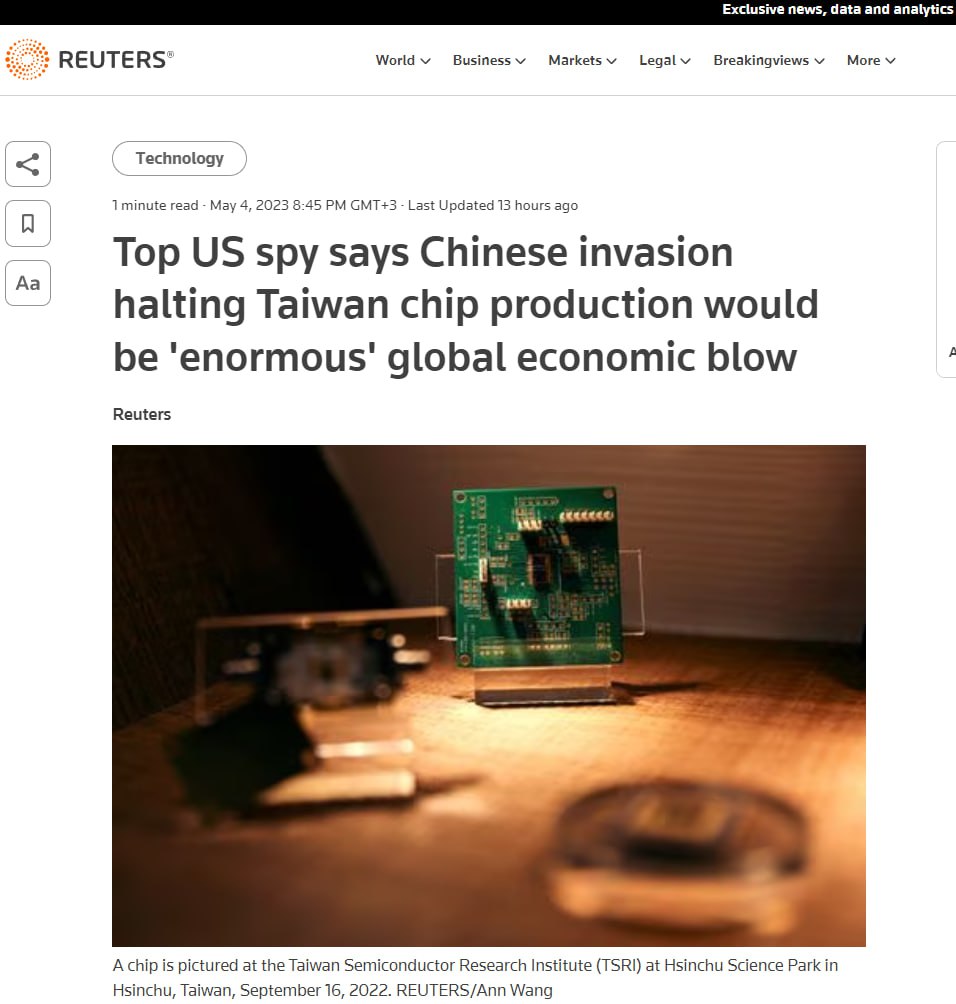 Директор національної розвідки США Авріл Хейнс, виступаючи перед сенатським комітетом із збройних сил, заявила, що передові напівпровідникові мікросхеми виробництва Taiwan Semiconductor Manufacturing Company Ltd використовуються в 90% "майже всіх категорій електронних пристроїв по всьому світу".