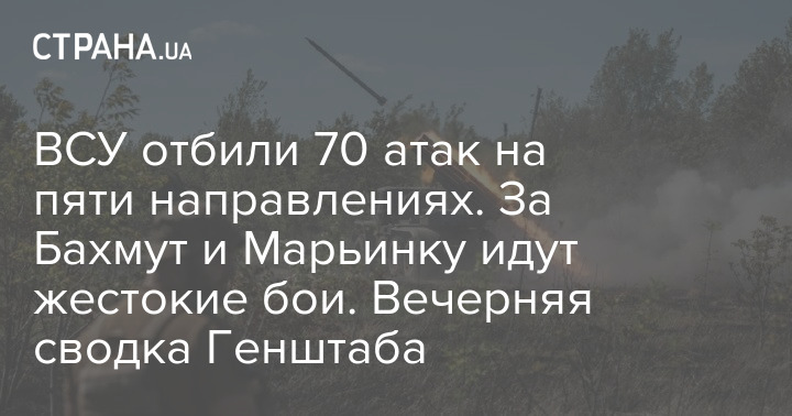 ЗСУ відбили 70 атак на п'яти напрямках. За Бахмут та Мар'їнку йдуть жорстокі бої. Вечірнє зведення Генштабу
