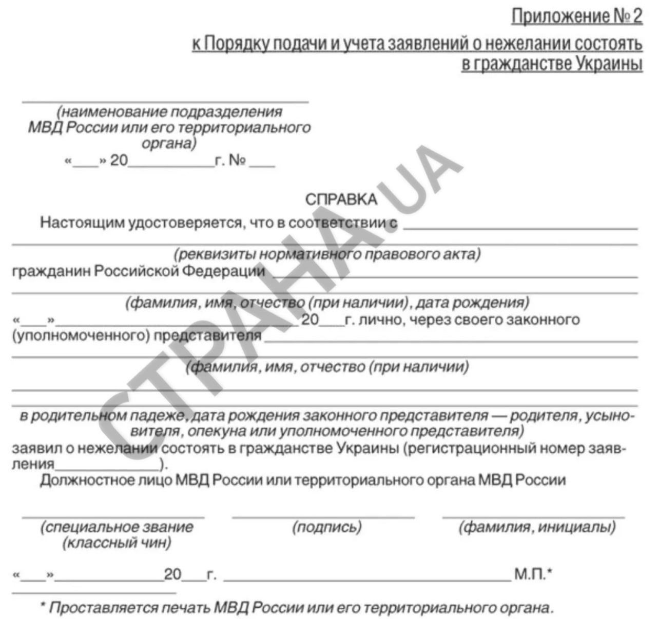 Натомість заявники отримають довідку про те, що вони "не бажають перебувати у громадянстві України". Надалі вони мають надавати її "за місцем вимоги". Український паспорт при цьому не вилучається.