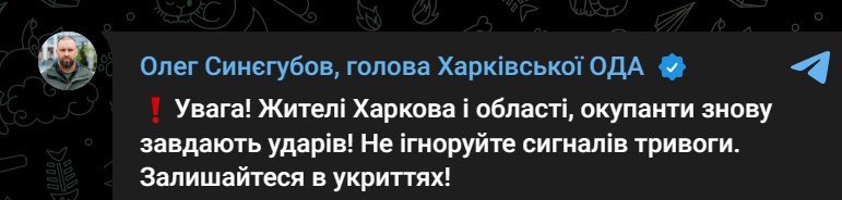 19:47 Влада області підтверджує удари по Харкову і закликає перебувати в укриттях.