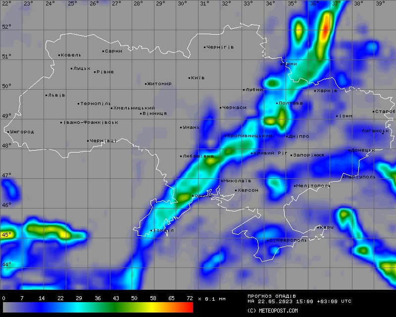 Дощі найближчим часом пройдуть на Лівобережжі. На півночі та заході опади дійдуть 24-25 травня. Дощі матимуть короткочасний і локальний характер, частішатиме грози.