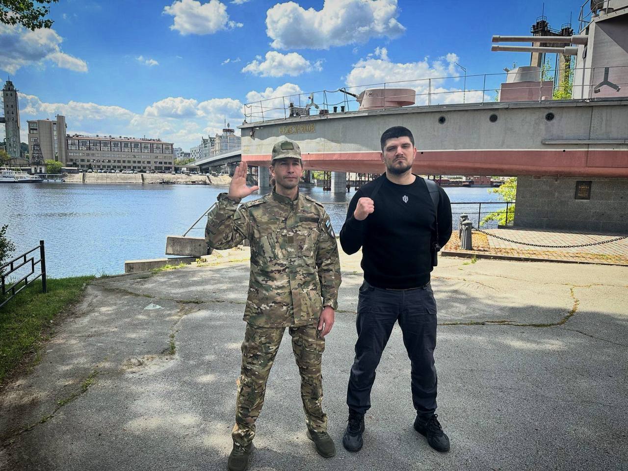 Причому фото було зроблено на Рибальському острові, біля місцевої пам'ятки - есмінця "Залізняків" у парку Моряків. Поруч із яким, до речі, розташована штаб-квартира Головного управління розвідки України, яке, за чутками, і займається російськими підрозділами, що воюють на боці України.