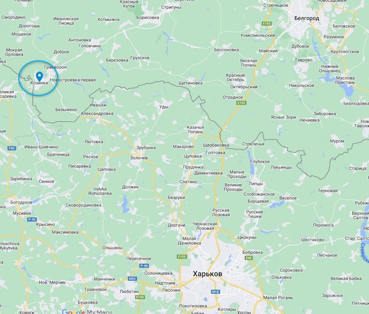 З постів білгородців випливало, що "українська ДРГ" знаходиться в Будинку культури у селі Гора-Поділ (північний схід від Козинки), по ній ведуть вогонь російські військові.