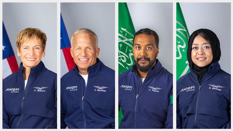 Командиром корабля стала колишня астронавт NASA Пеггі Вілсон, яка увійшла до історії як перша жінка-командир експедиції МКС. Пілотом став бізнесмен Джон Шоффнер. До складу екіпажу також увійшли астронавти із Саудівської Аравії Райяна Барнаві та Алі аль-Карні. При цьому Барнаві стала першою жінкою-астронавтом із Саудівської Аравії.