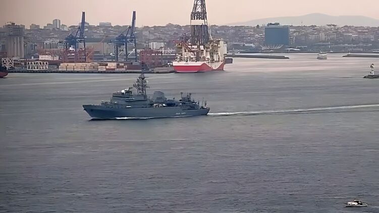 Російський розвідувальний корабель "Іван Хурс" атакували вранці в четвер, 24 травня, безпілотників в акваторії Чорного моря після проходження протоки Босфор.