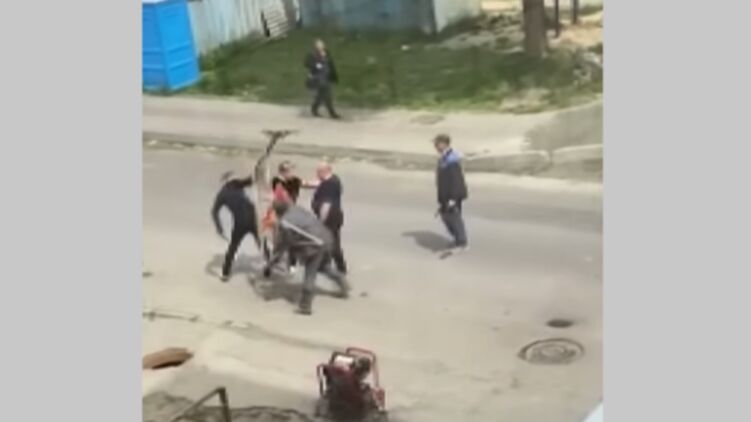 Луцькі комунальники відбивалися від неадекватів підручними засобами. Скріншот відео