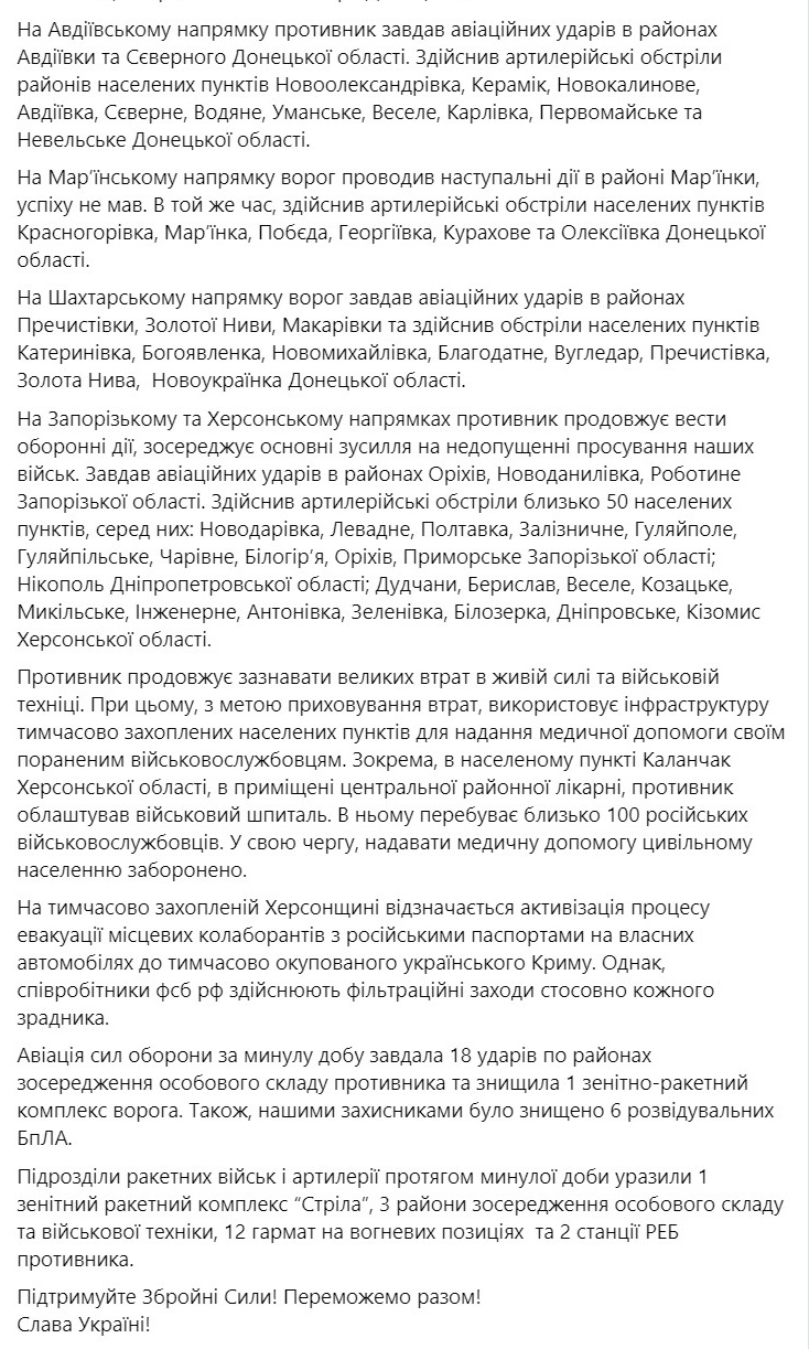 19:07 Свіже вечірнє зведення Генштабу ЗСУ.