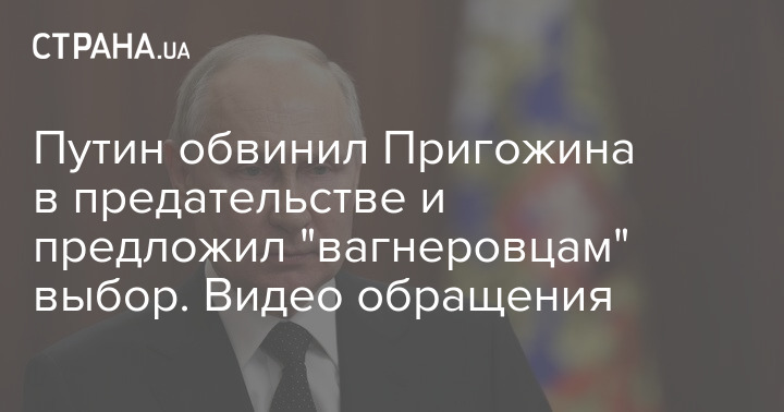 Путін звинуватив Пригожина у зраді та запропонував "вагнерівцям" вибір. Відео звернення