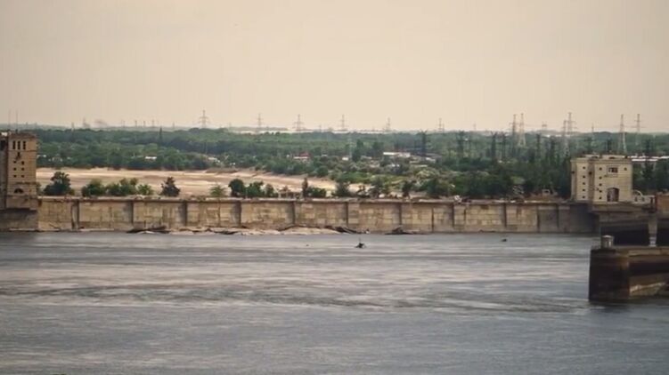 У мережі з'явилося відео, як виглядає Каховська ГЕС. після того, як пішла вода, водосховище сильно обміліло.