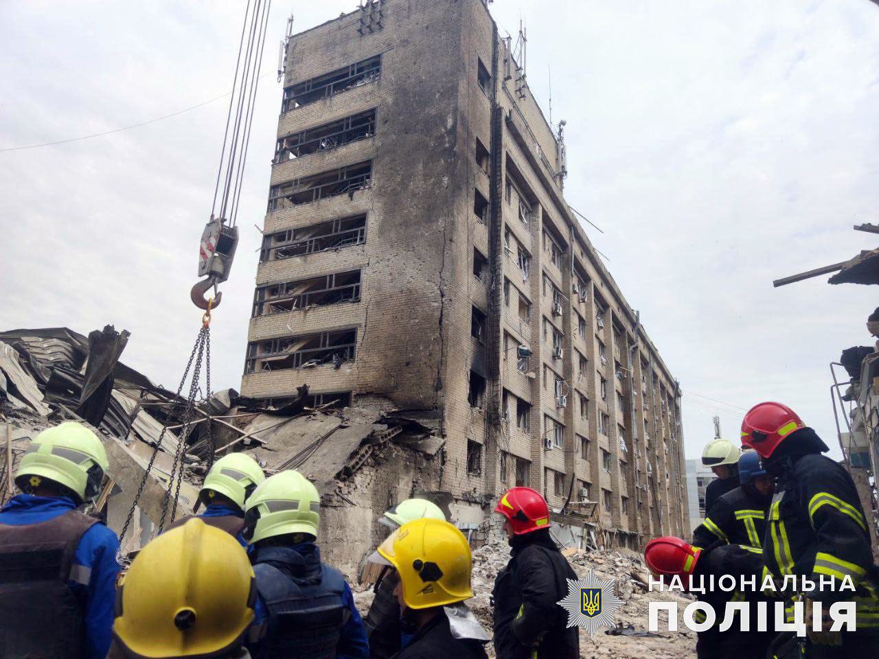 "Загиблих вже 10, поранених 61. Всім пораненим надано медичну допомогу. Під завалами ще може бути одна-три людини. Роботи тривають, розбиваємо монолітну стелю з бетону", - повідомив Гончаренко.