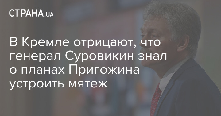 У Кремлі заперечують, що генерал Суровікін знав про плани Пригожина влаштувати заколот