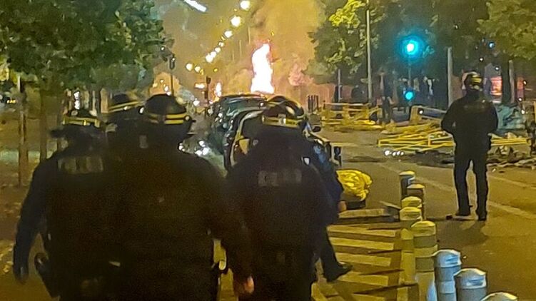 По всій Франції протестувальники підпалювали автомобілі та будинки, грабували магазини, нападали на поліцейські дільниці, закидаючи їх феєрверками, билися з поліцією.
