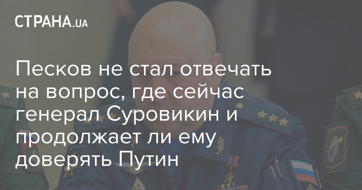Прес-секретар Путіна Пєсков не став відповідати на запитання, де зараз близький до Пригожину генерал Суровікін і чи продовжує йому довіряти Путін.