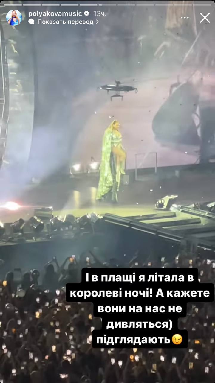 "І у плащі я літала в "Королеві ночі"! А кажіть, вони на нас не дивляться. Підглядають", - написала Полякова.