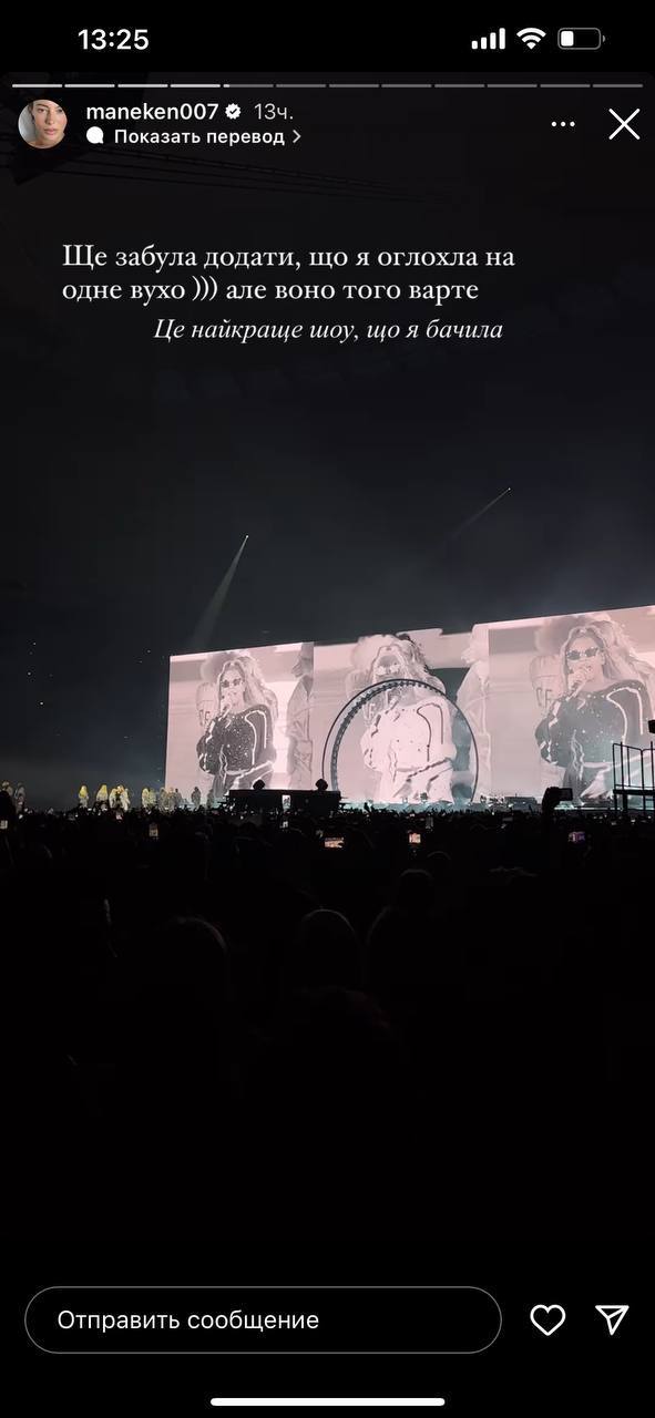 "Я оглухла на одне вухо, але воно того варте. Це найкраще шоу, яке я бачила", - написала Манекен.