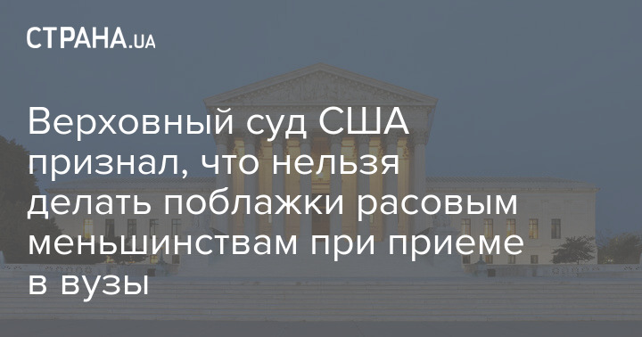 Верховний суд США визнав, що не можна робити поблажки расовим меншинам під час прийому до вузів