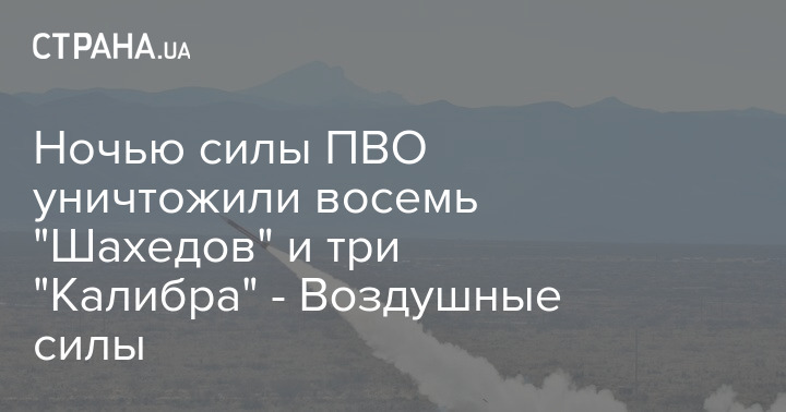 "Пуски восьми "Шахедів" здійснювалися з південно-східного напрямку, "Калібрів" - з Чорного моря. Протиповітряна оборона Повітряних Сил працювала в різних областях України - у зонах відповідальності повітряних командувань "Південь", "Схід" та "Центр"", - йдеться у повідомленні.