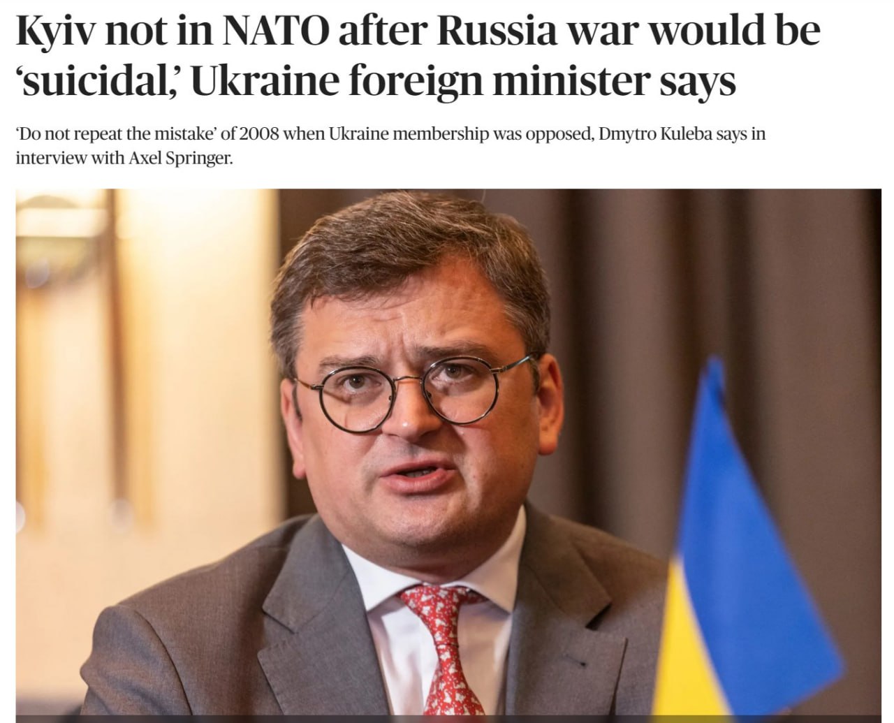 "Після закінчення війни для Європи буде самогубством не прийняти Україну в НАТО, тому що це означатиме, що варіант … війни залишиться відкритим", - сказав міністр.