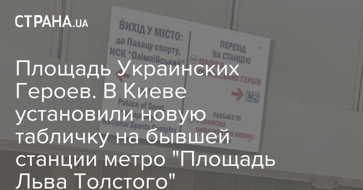 Площа Українських Героїв. У Києві встановили нову табличку на колишній станції метро "Площа Льва Толстого"