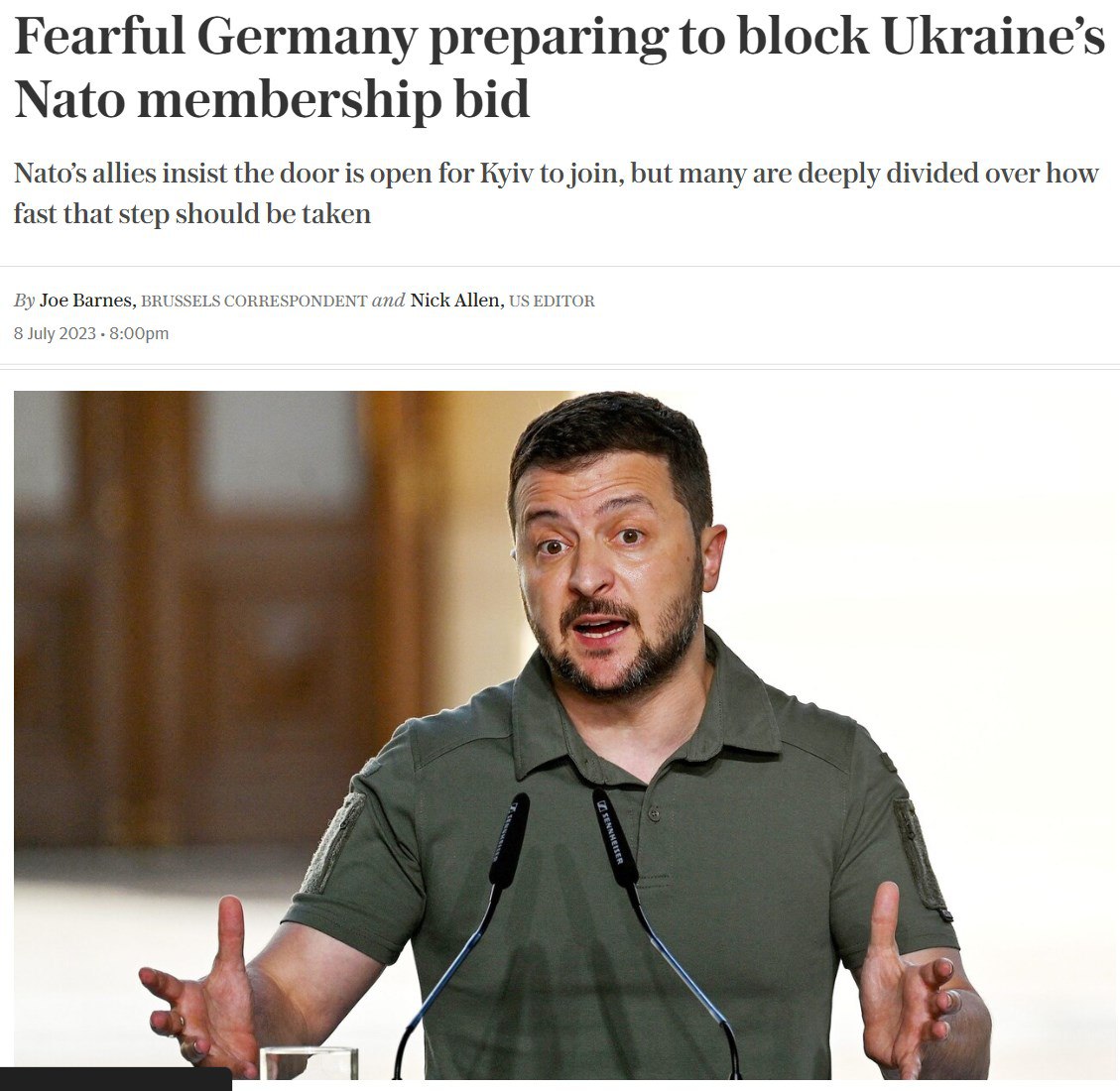 Джерело видання Telegraph повідомило, що Берлін закликає зосередитися на гарантіях безпеки, а не на пропозиціях про членство.