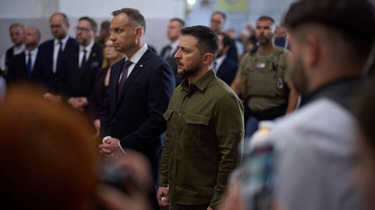 "Разом вшановуємо всіх безневинних жертв Волині. Пам'ять нас об'єднує. Разом ми сильніші", - підписав український президент фото з польським колегою у Луцьку.