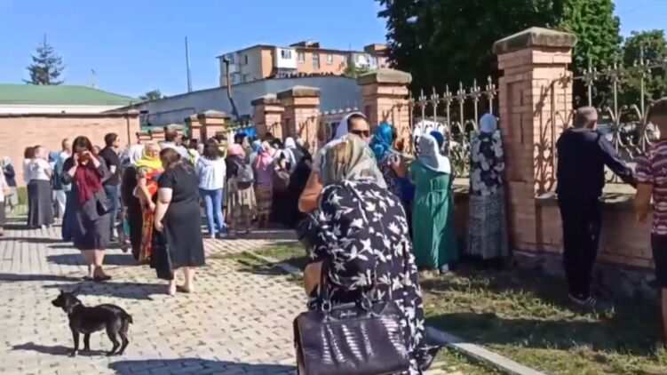 Віруючих УПЦ не пропускають на територію храму. Скріншот відео