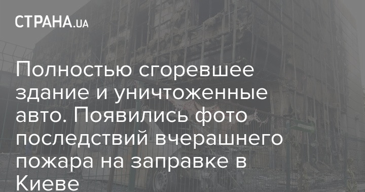 Повністю згоріла будівля та знищені авто. З'явились фото наслідків вчорашньої пожежі на заправці у Києві
