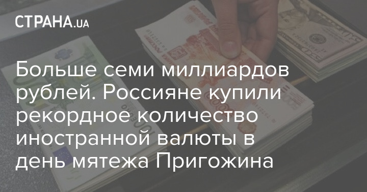 Росіяни 24 червня (у день заколоту куратора ПВК "Вагнер" Євгена Пригожина) купили іноземної валюти на 7,1 млрд. рублів. Про це повідомляє Центробанк РФ.