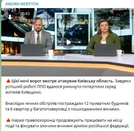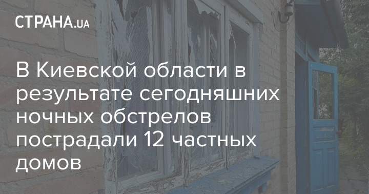 На Київщині внаслідок сьогоднішнього нічного обстрілу постраждали 12 приватних будинків, у шести квартир у багатоповерхівці вибило вікна.