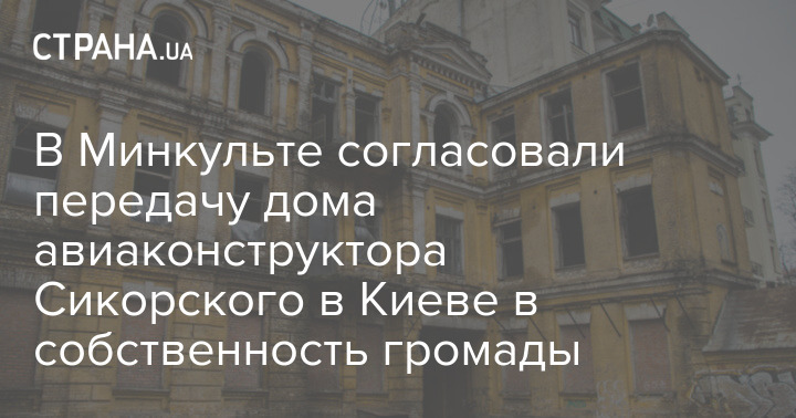 Міністерство культури та інформаційної політики (МКІП) України погодило розпорядження про передачу будинку авіаконструктора Ігоря Сікорського, що знаходиться в центрі Києва, у власність громади.