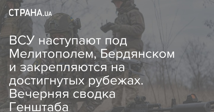 ЗСУ наступають під Мелітополем, Бердянськом та закріплюються на досягнутих рубежах. Вечірнє зведення Генштабу