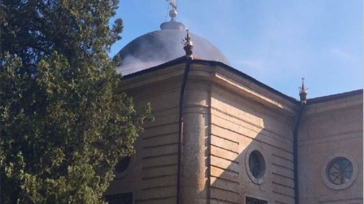 У храмі виникла пожежа, гасити яку приїхали рятувальники, та потрапили під повторний обстріл.