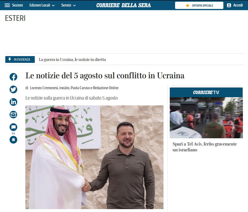 Про це пише італійське видання Corriere della Sera із посиланням на джерела.