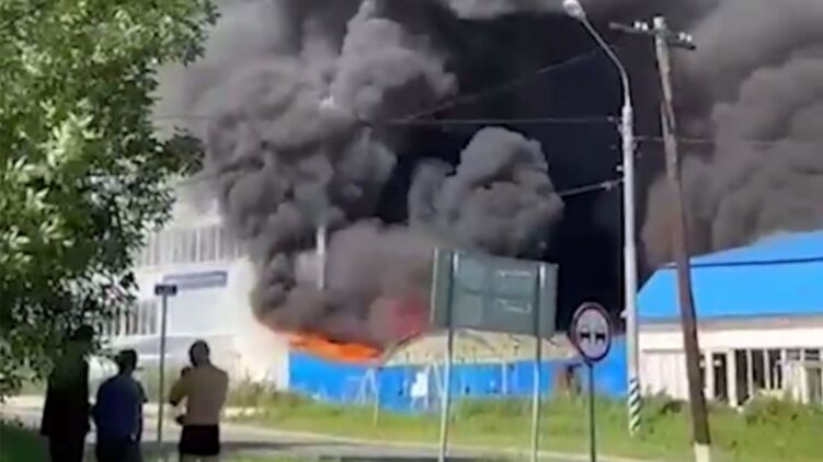 Під Дмитровом Московської області виникла масштабна пожежа. За даними журналістів, горить фабрика із виробництва спортивних товарів "Леко".