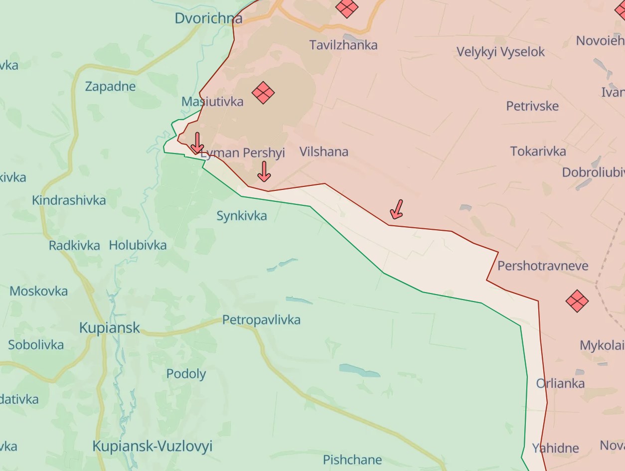 Сьогодні міноборони РФ заявило, що просунулося в районі Ольшани Харківської області, військові паблики РФ уточнюють, що йдеться про бої на південь від цього села, ближче до Сіньківки та Петропавлівки. Україна цього не підтверджувала.