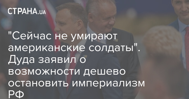 "Прямо зараз російський імперіалізм можна зупинити дешево, тому що американські солдати не вмирають. Але якщо ми зараз не зупинимо російську агресію, за це доведеться заплатити дуже високу ціну", - заявив Дуда.