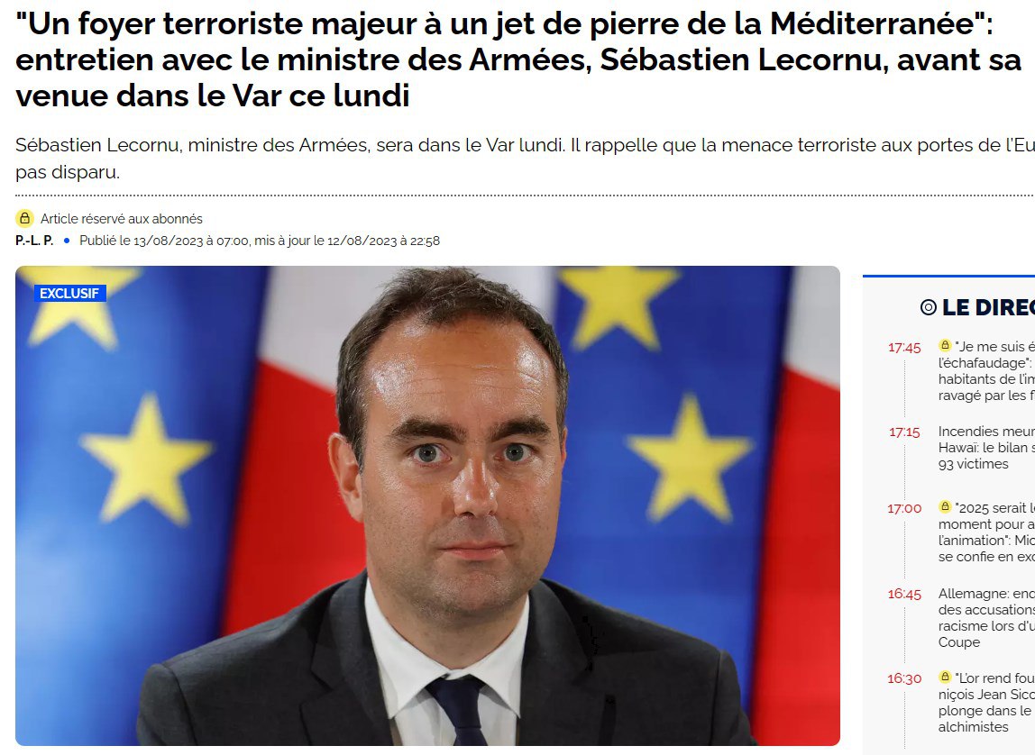Про це повідомив міністр оборони країни Себастьян Лекорню виданню Var-Matin.