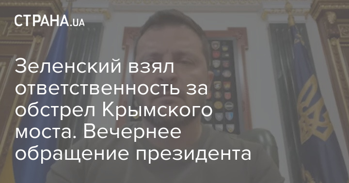 Зеленський взяв відповідальність за обстріл Кримського мосту. Вечірнє звернення президента