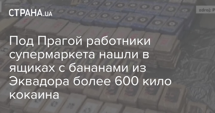 У чеському місті Клетани під Прагою комірники дистриб'юторського центру продуктової мережі Albert виявили у завезених з Еквадору ящиках із бананами брикети кокаїну загальною вагою 646 кг.