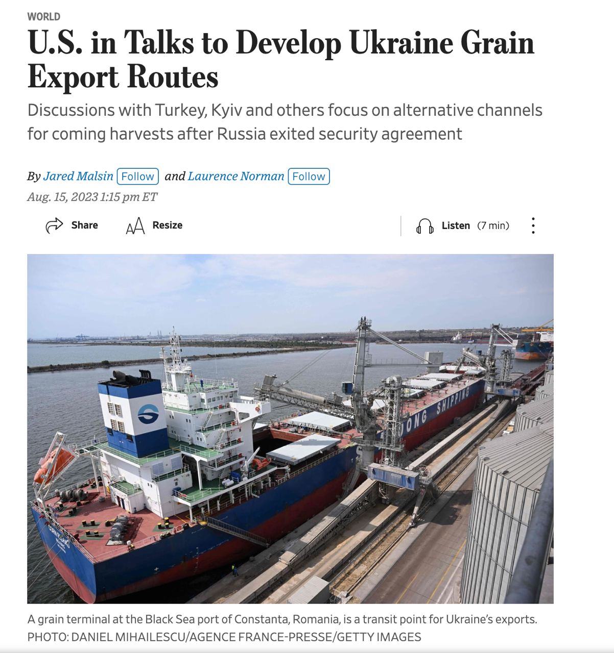 09.20 США ведуть переговори з Туреччиною, Україною та її європейськими сусідами щодо розширення альтернативних маршрутів для експорту зерна, пише The Wall Street Journal із посиланням на джерела.