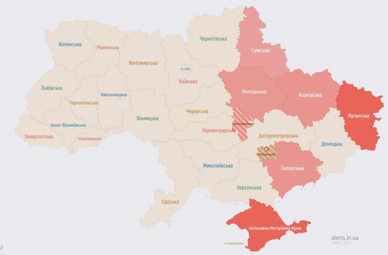 07.44 У низці областей на сході загроза застосування ударних безпілотників.