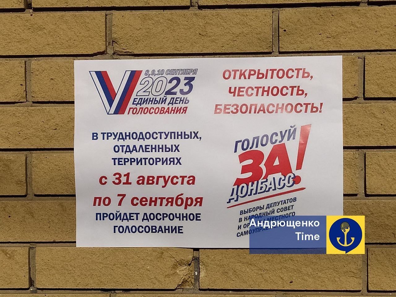 На них зазначено, що "дострокове голосування" відбудеться з 31 серпня до 7 вересня. Тоді як основний день голосування в РФ – 10 вересня.