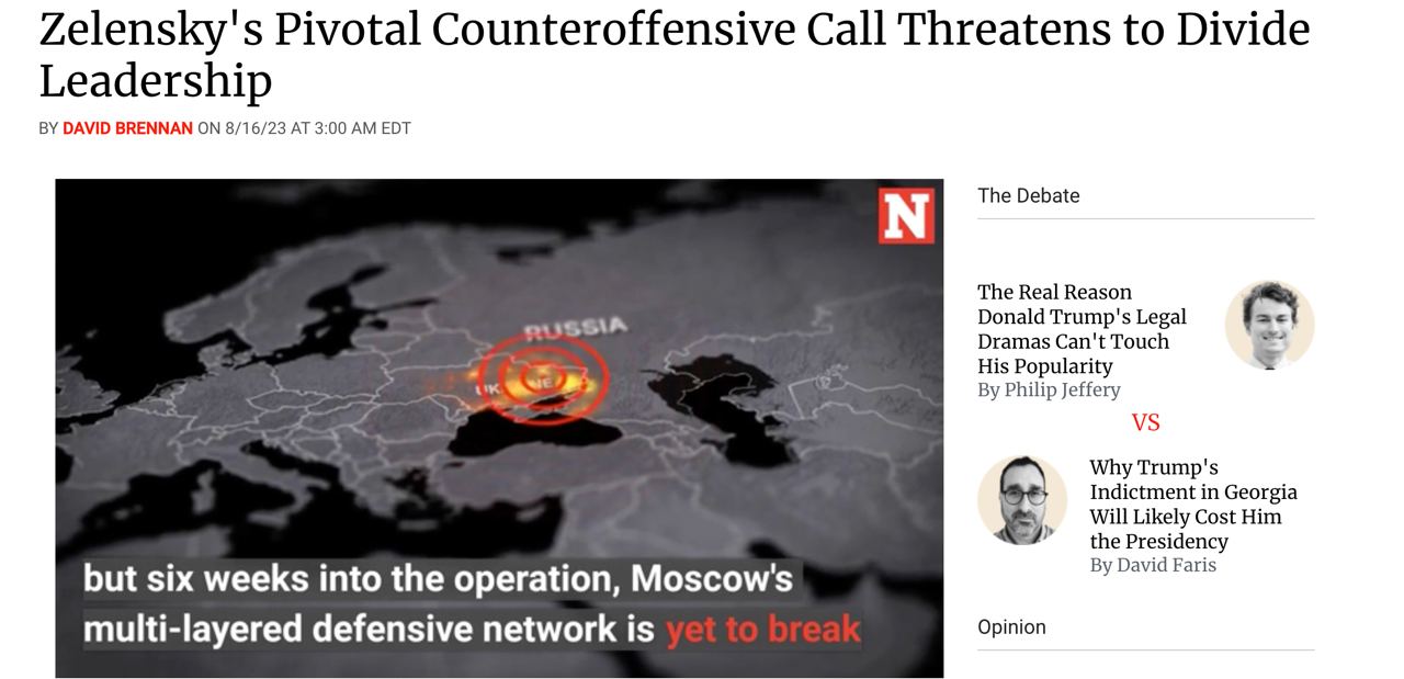 12.25 Американський журнал Newsweek заявляє про розбіжності у керівництві України щодо стратегії подальшого наступу на півдні через повільний прогрес.