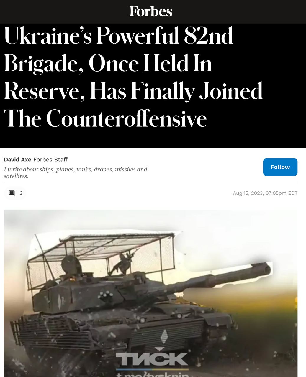 14:40 Україна кинула в бій одну з останніх резервних бригад, підготовлену для поточного наступу на півдні, повідомляє Forbes.