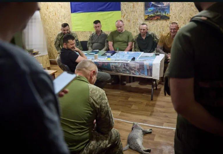 14.45 Паблики звернули увагу на фотографію із Зеленським, військовими та котом.