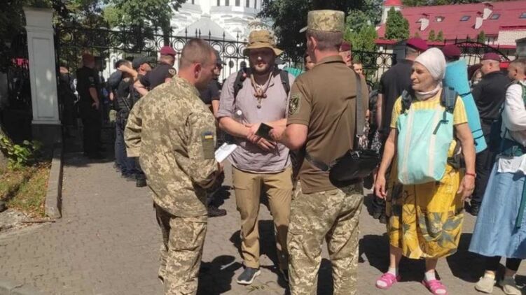 До поліцейських, які збудували оточення біля Почаївської лаври, приєдналися військкоми, які вручали повістки чоловікам, які взяли участь у хресному ході.