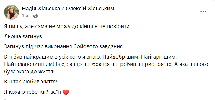 11:23 На фронті загинув український кіноактор Олексій Хільський. Він воював у 46-й окремій аеромобільній бригаді на посаді головного сержанта взводу розвідроти.