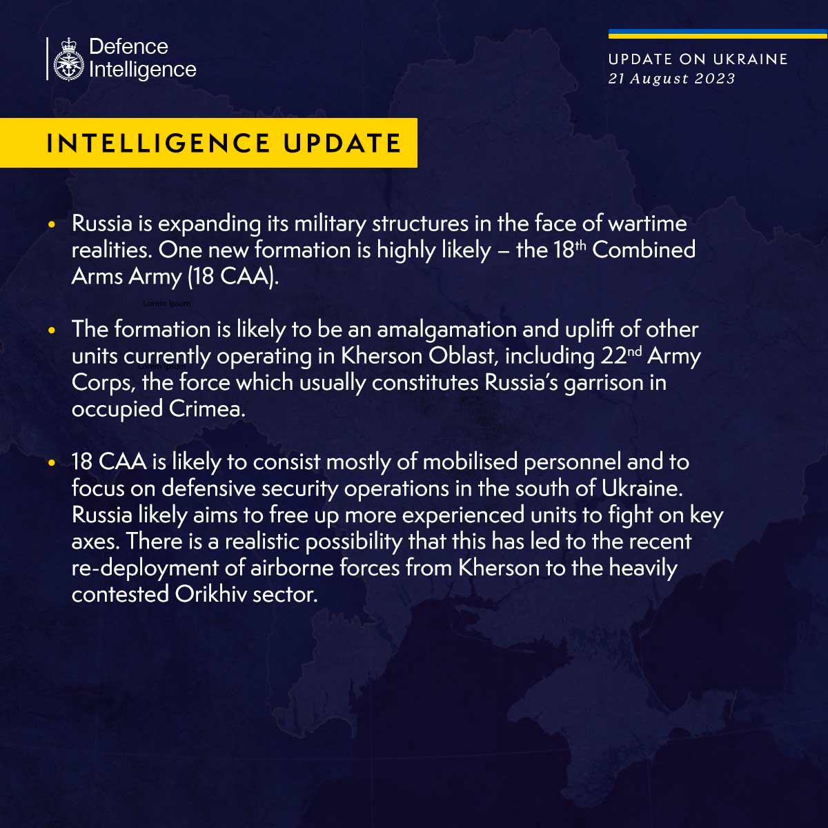 18-а ОА, ймовірно, складатиметься в основному з мобілізованих і стане частиною російської оборони на півдні України, дозволивши звільнити більш досвідчені підрозділи для наступальних дій на ключових напрямках.