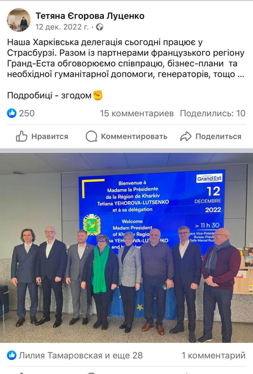 Він заявляє, що Луценко поїхав до Франції оформлювати угоду на службовому автомобілі облради Skoda Super B, наданому дружиною. Для цього водій Єгорової виїхав за кордон за документами волонтера.